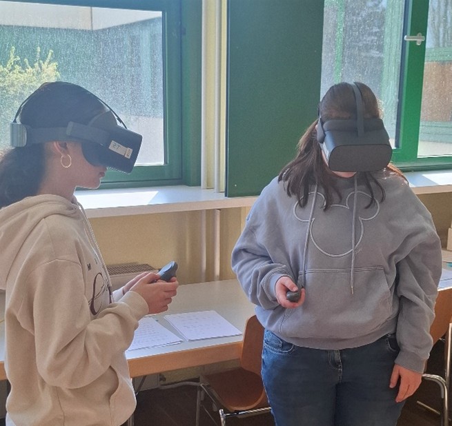 Ein besonderes Highlight des Tages war der Einsatz von VR-Brillen: Mithilfe virtueller Realität konnten die Schülerinnen und Schüler in verschiedene Berufsfelder eintauchen – vom Handwerker über Berufskraftfahrer bis hin zum Einzelhandelskaufmann bzw. zur Einzelhandelskauffrau. Diese innovativen Einblicke eröffneten neuen Perspektiven und machten deutlich, wie vielfältig die Berufswelt ist.